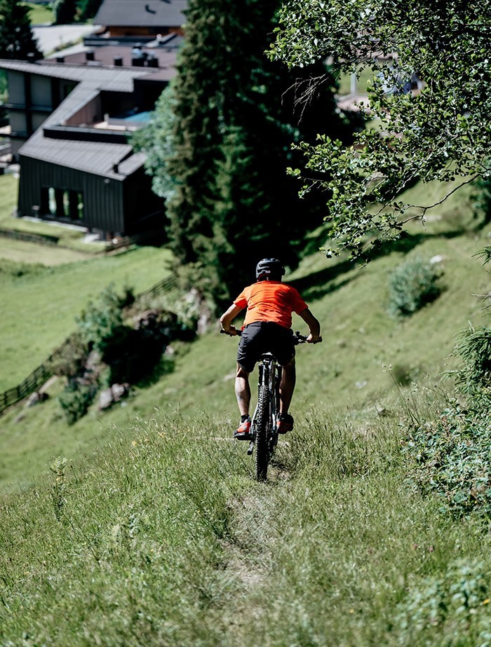 Du drehst Dich im Kreis. Radlwege, Wiesen- und Wanderwege, luftig, schnell und unbeschwert. Unterm Sommerhimmel, über Gebirgsschluchten und mitten in den mystischen Felsen, Frühstücksboxen und der blubbernde Infinity Pool erfüllen jegliches Verlangen nach Sommer in Kleinarl.