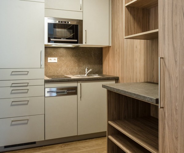 - Küchenzeile inkl. Doppelherdplatte und Mikrowelle